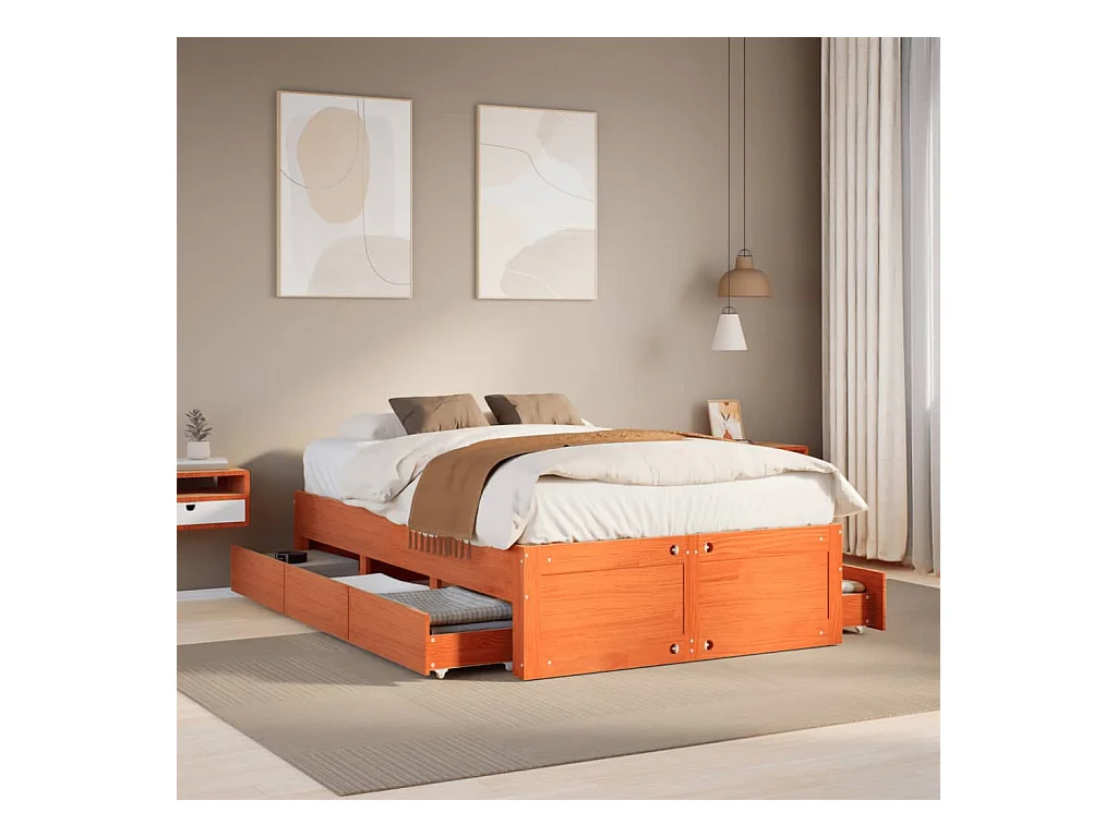 Cadre de lit sans matelas avec tiroirs 120x200 cm bois pin