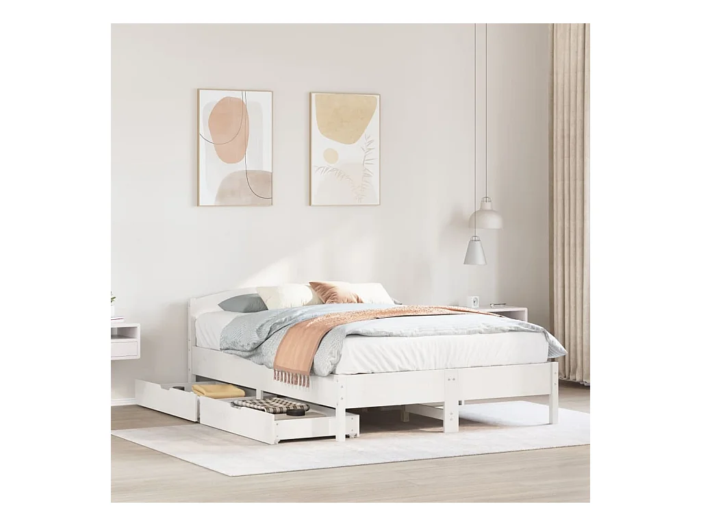 Cadre de lit sans matelas avec tête de lit blanc 120x190 cm pin