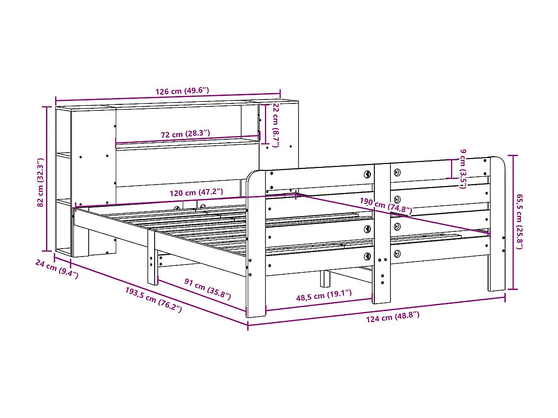 Cadre de lit sans matelas blanc 120x190 cm bois de pin massif