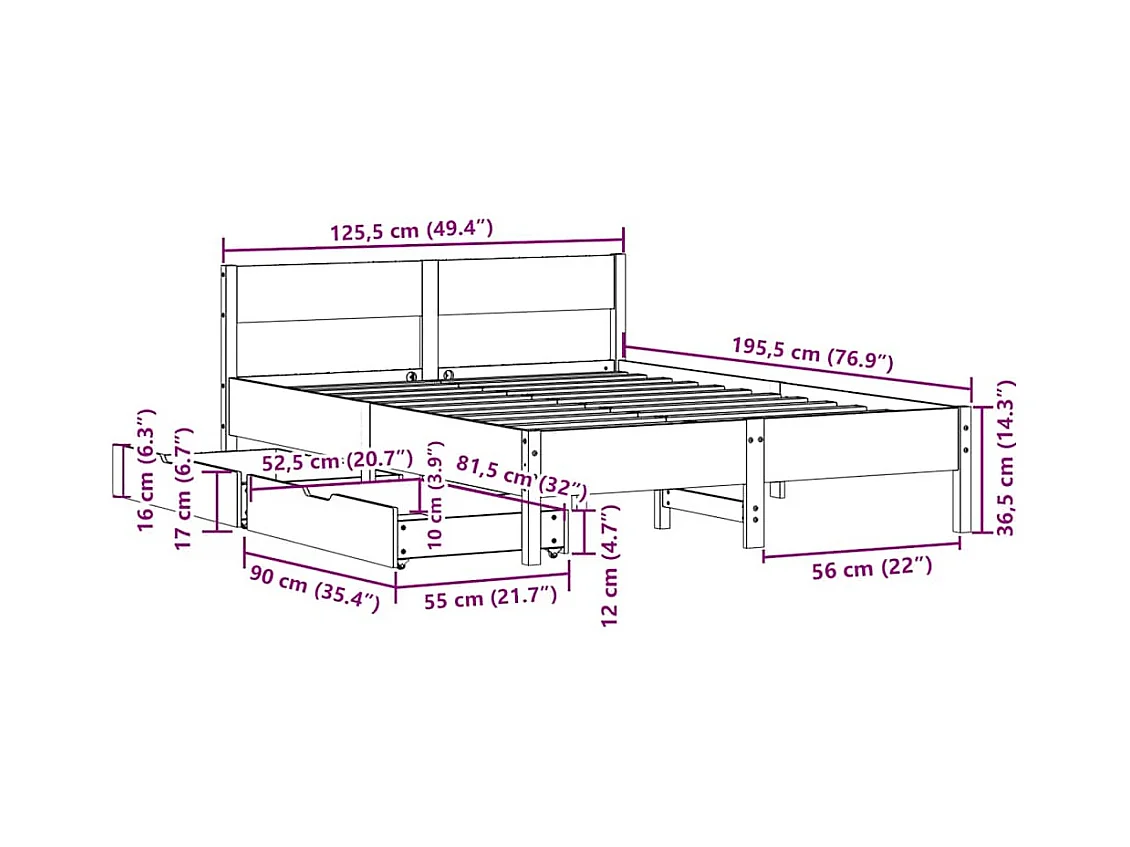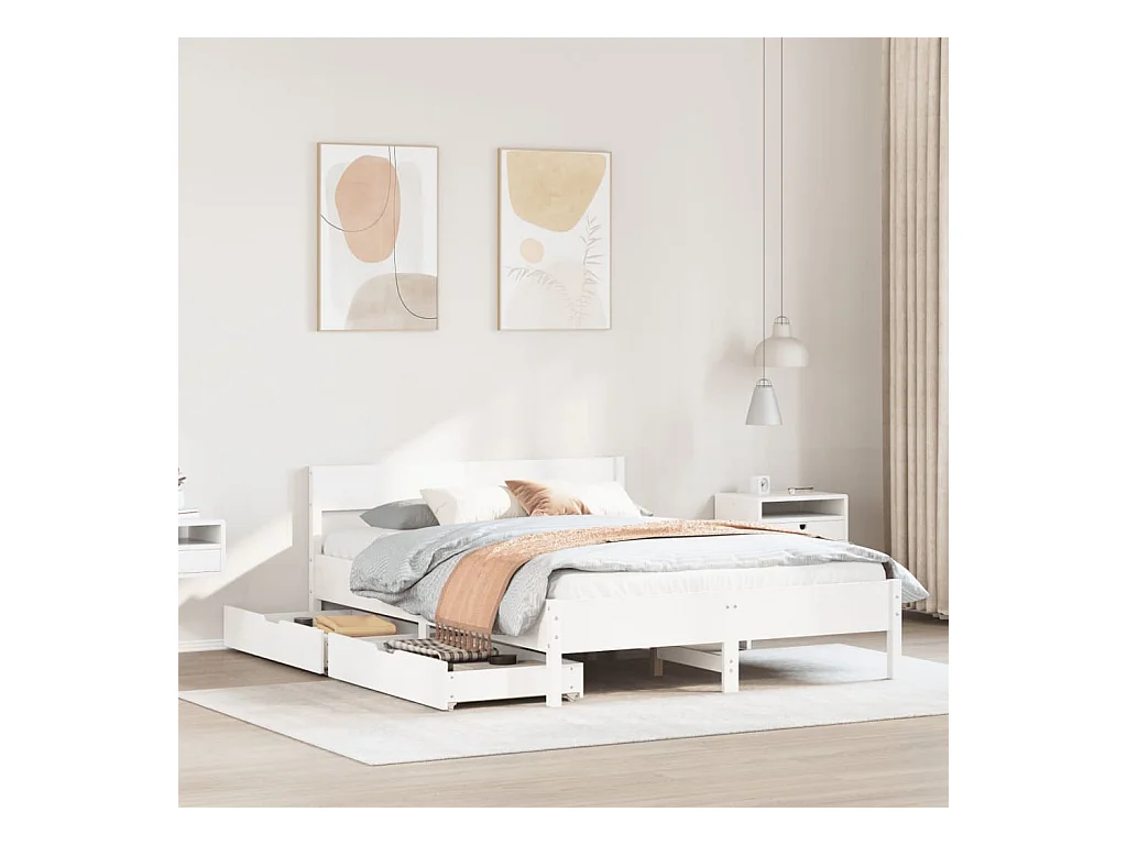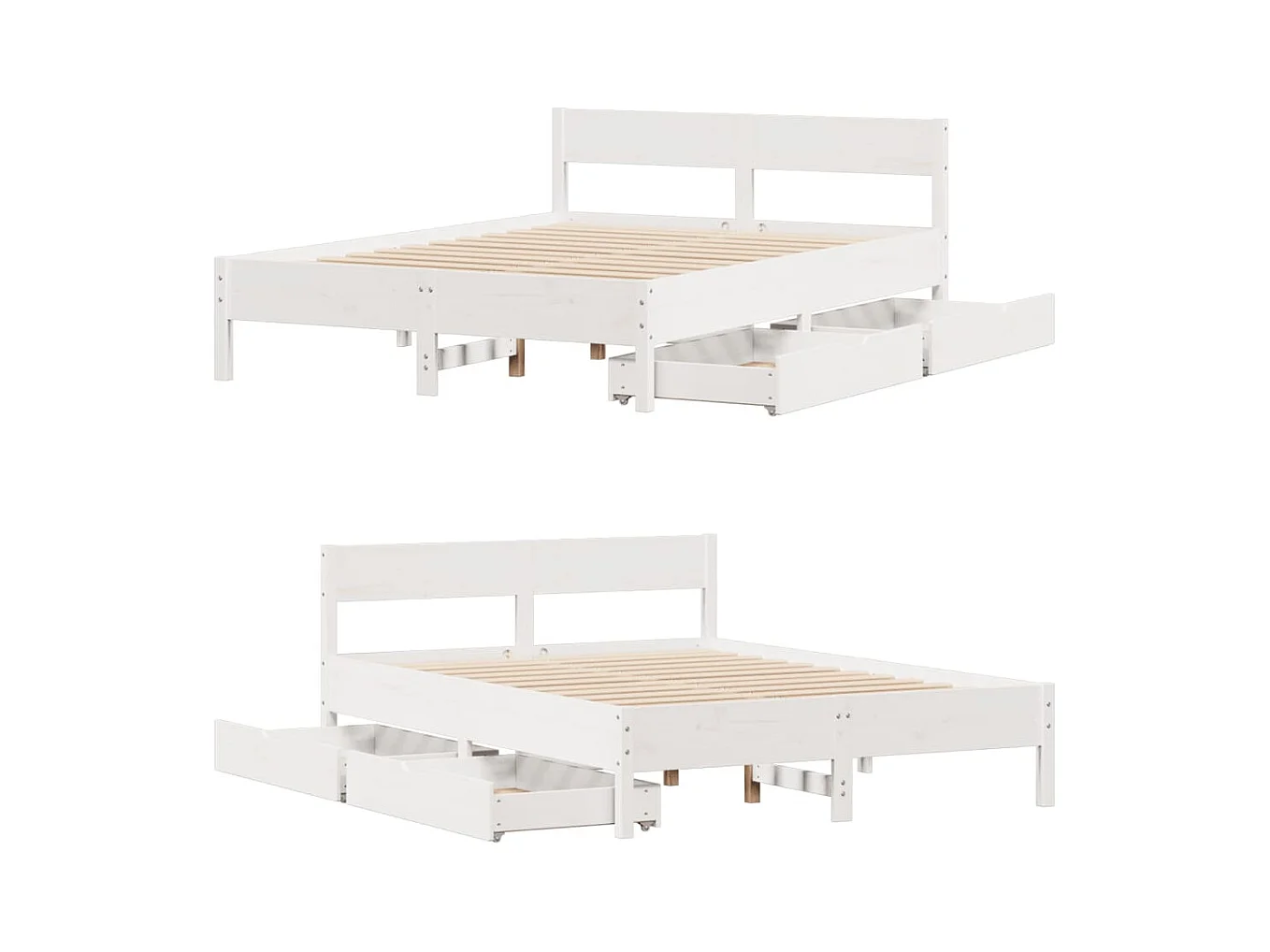 Cadre de lit avec tiroirs blanc 120x190 cm bois pin massif