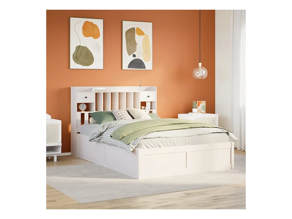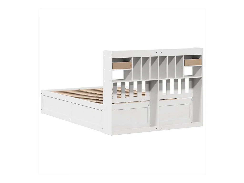 Lit bibliothèque sans matelas blanc 140x200 cm bois pin massif
