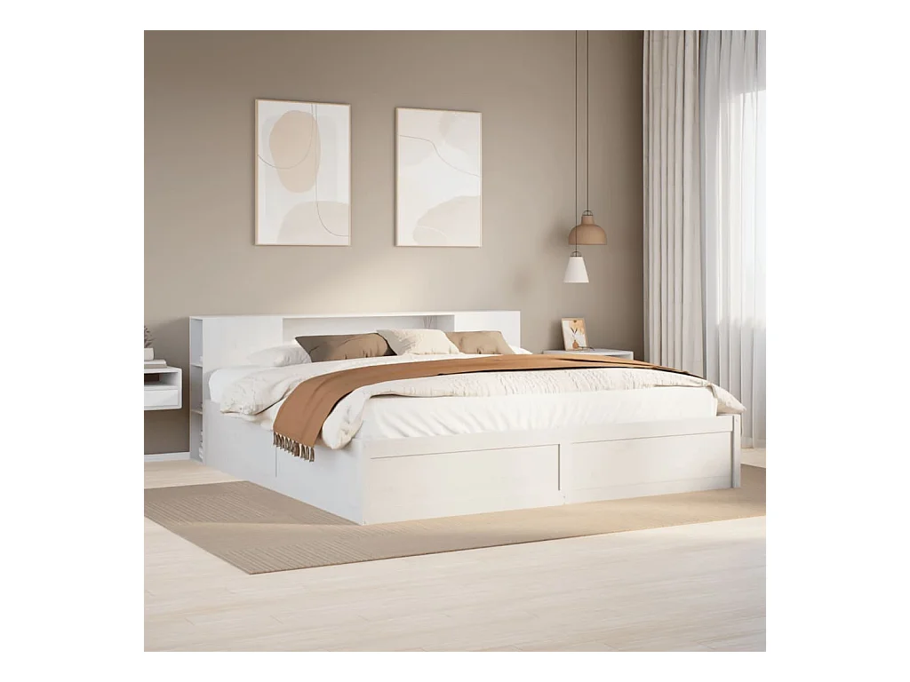 Cadre de lit avec tiroirs sans matelas blanc 180x200 cm