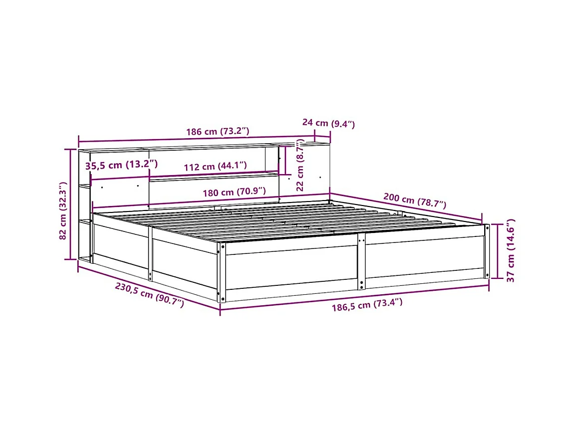 Cadre de lit sans matelas blanc 180x200 cm bois massif de pin