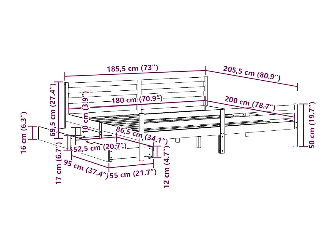 Cadre de lit avec tiroirs sans matelas blanc 180x200 cm