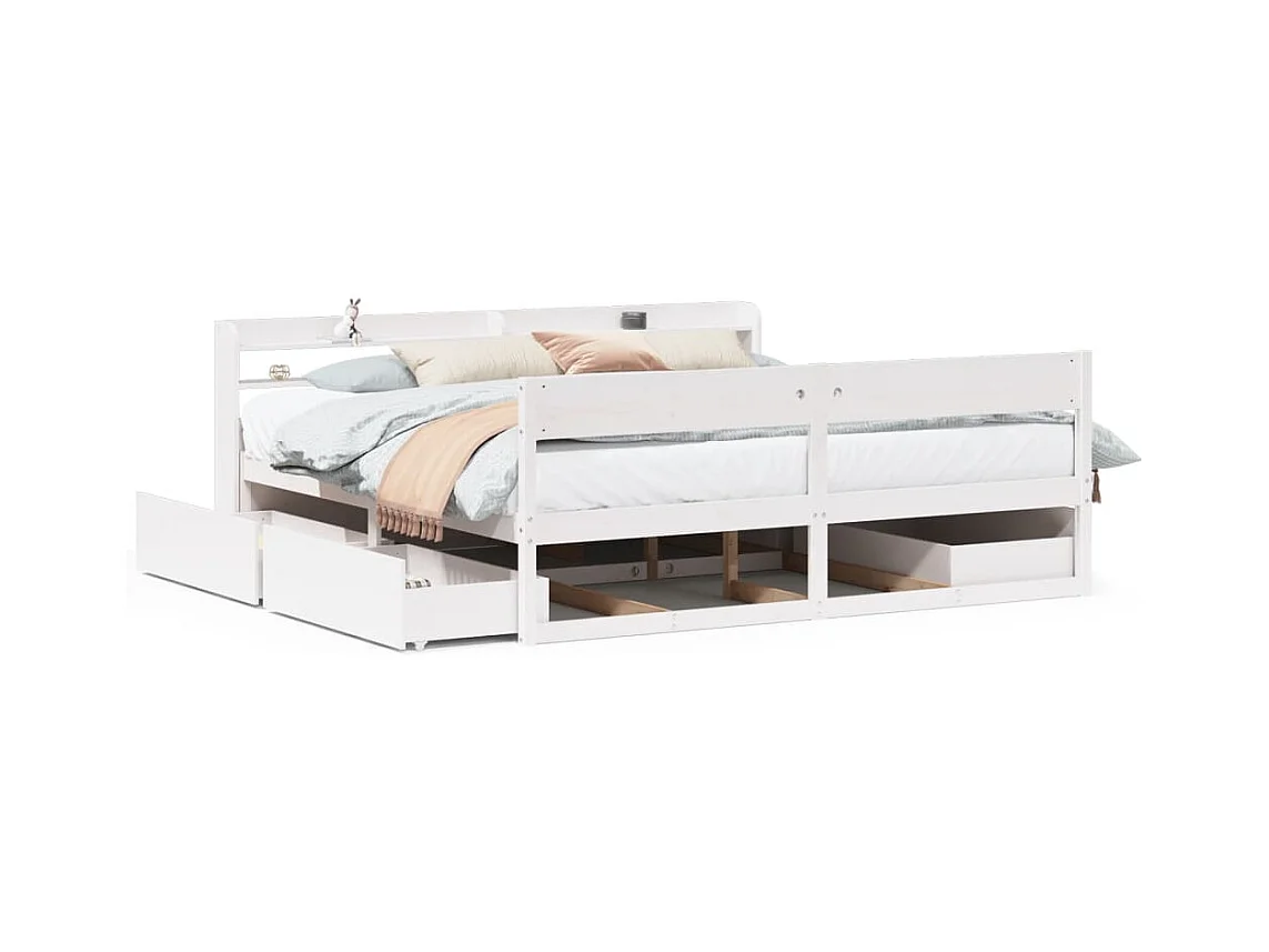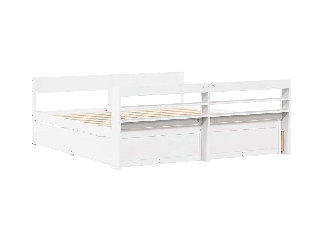 Cadre de lit avec tiroir Blanc 200 x 200 cm bois