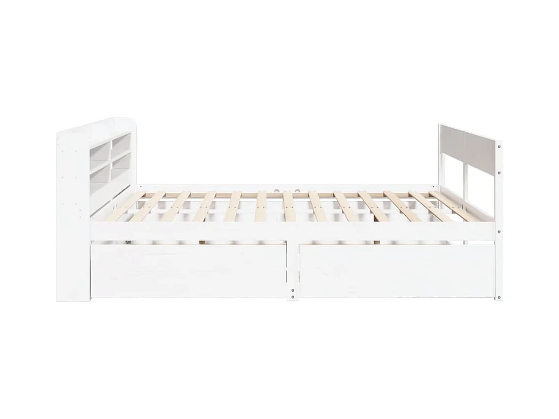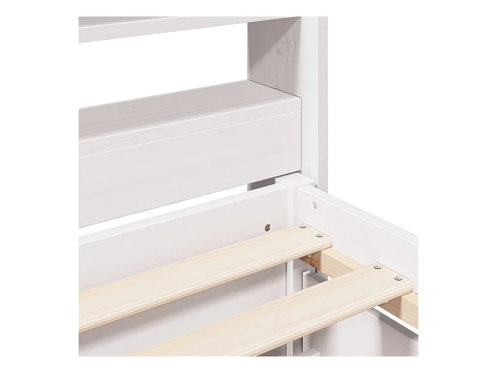 Lit bibliothèque sans matelas blanc 200x200 cm bois pin massif