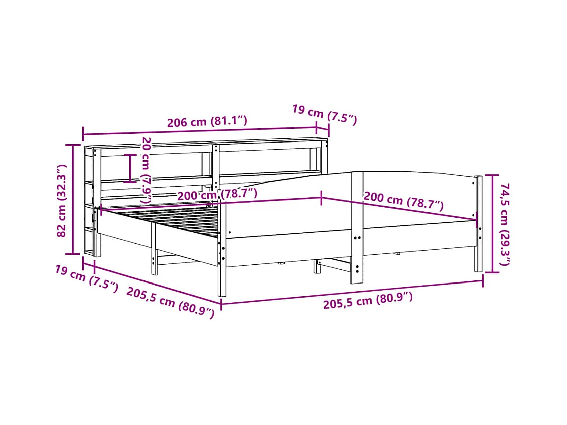 Lit bibliothèque sans matelas blanc 200x200 cm bois pin massif