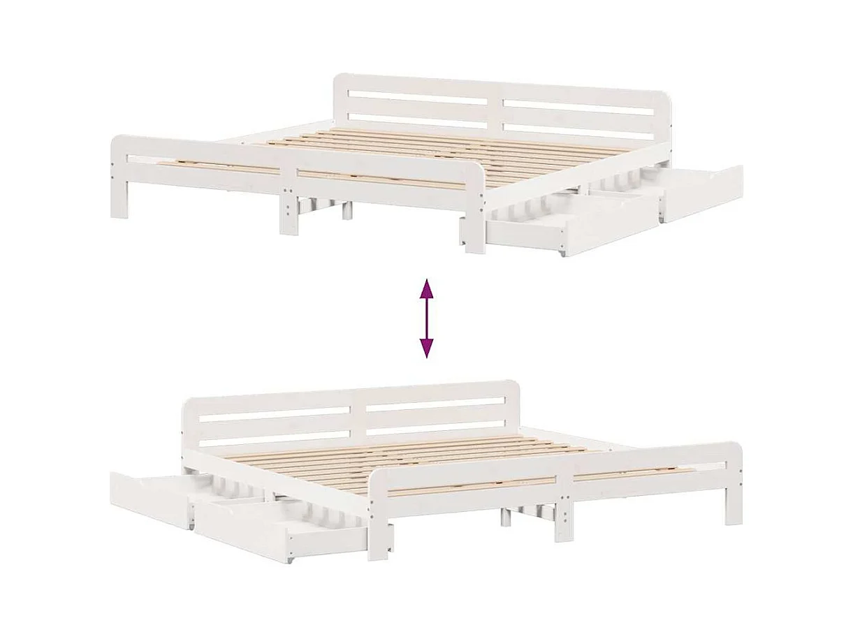 Cadre de lit avec tiroirs sans matelas blanc 200x200 cm