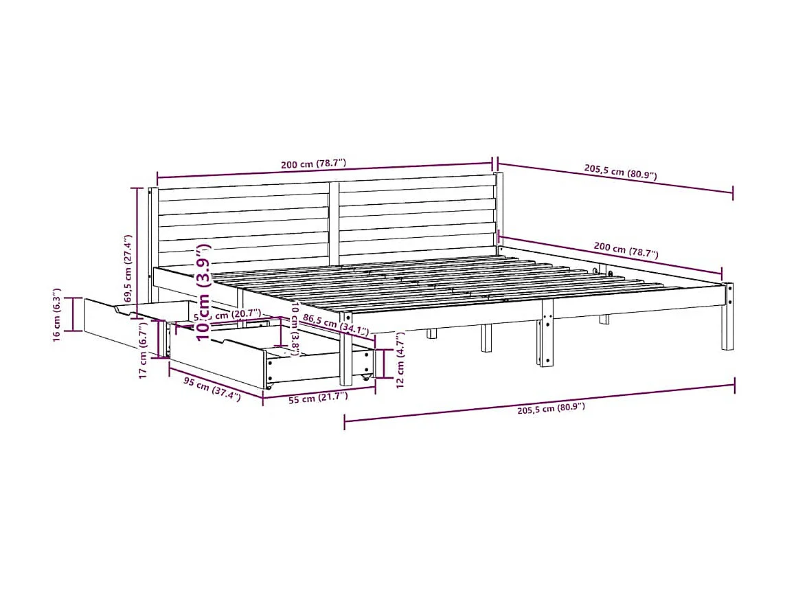 Cadre de lit avec tiroirs sans matelas blanc 200x200 cm