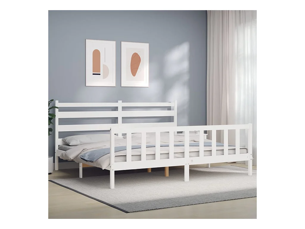 Cadre de lit sans matelas blanc bois massif 200x200 cm