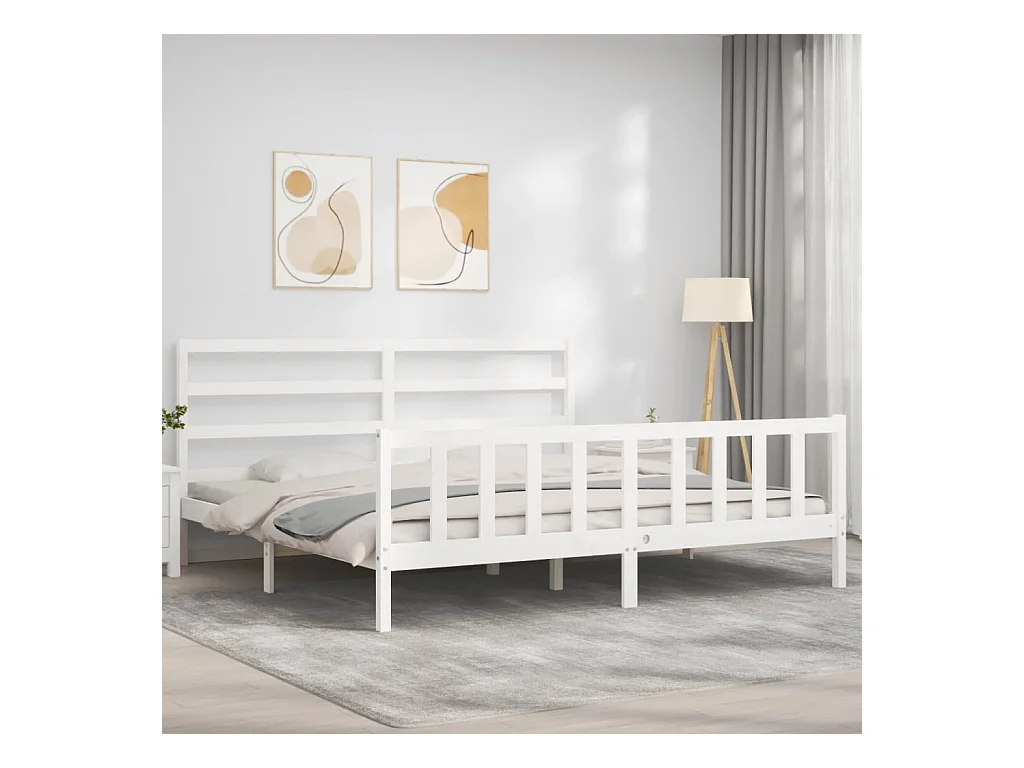 Cadre de lit sans matelas blanc 200x200 cm bois massif de pin