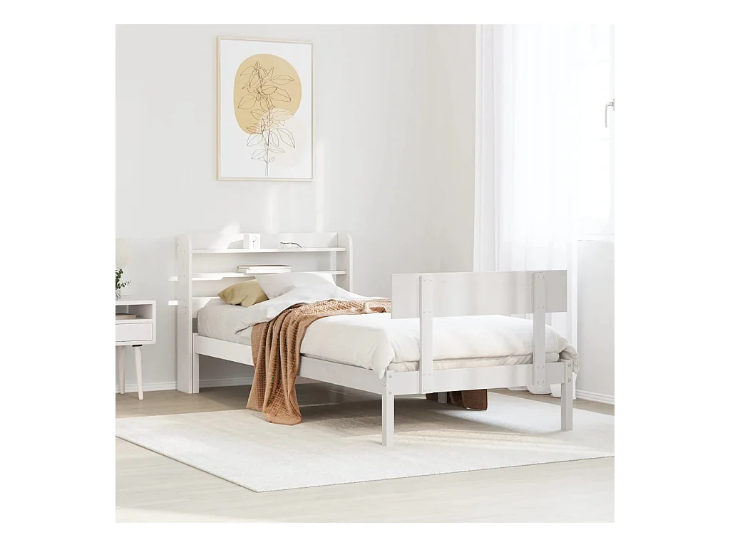 Cadre de lit sans matelas blanc 75x190 cm bois de pin massif