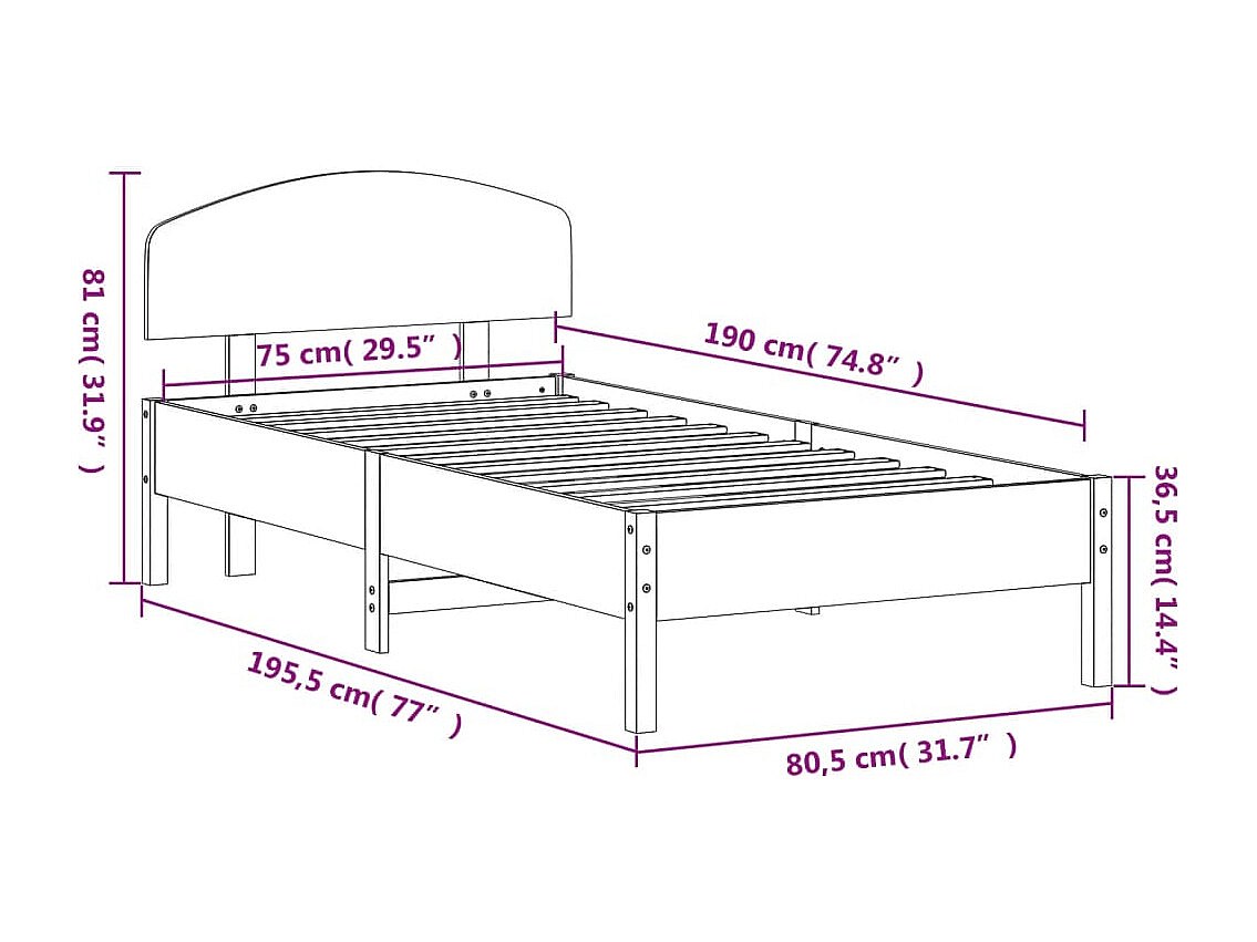 Cadre de lit sans matelas blanc 75x190 cm bois de pin massif