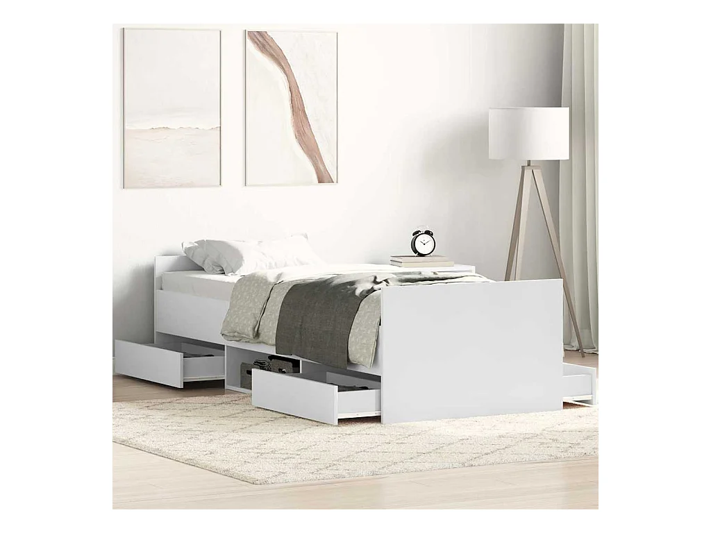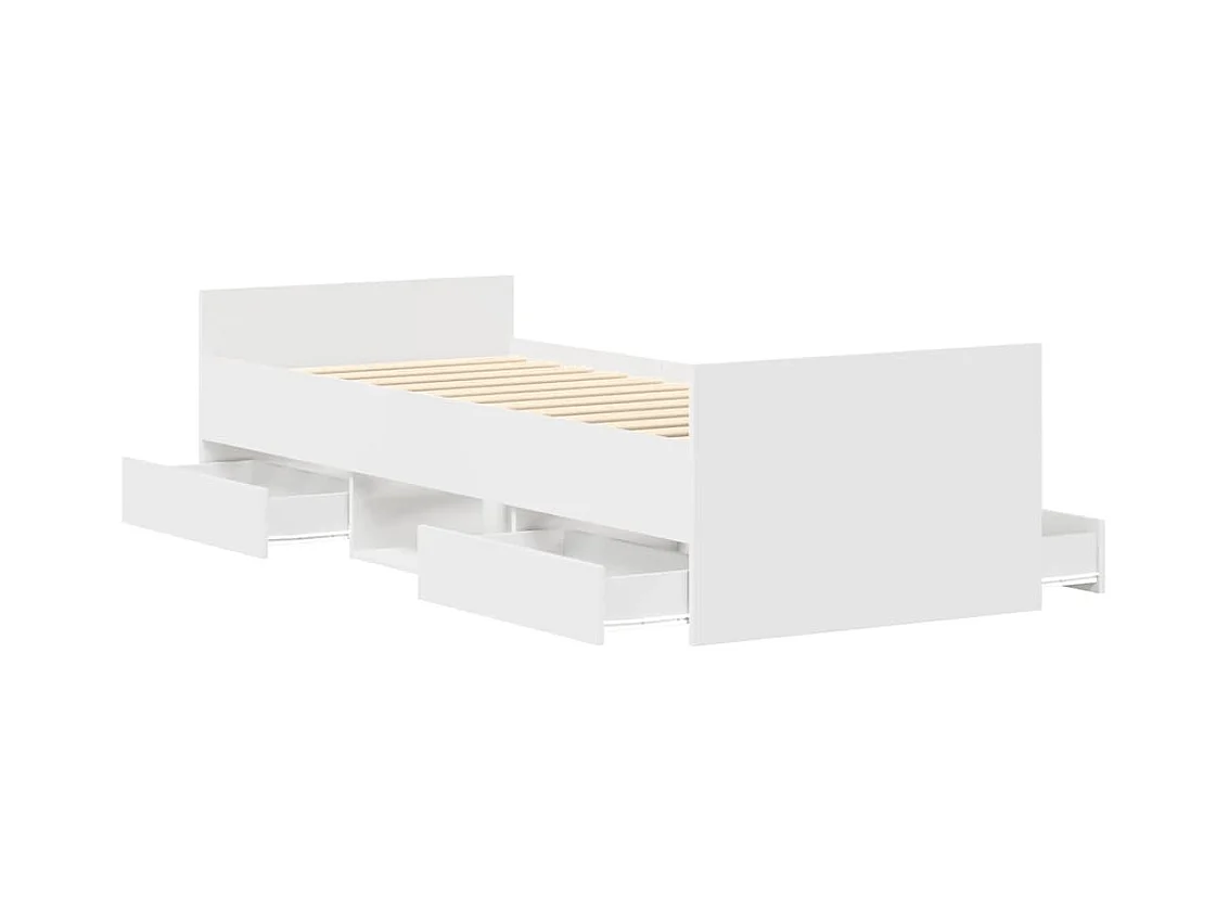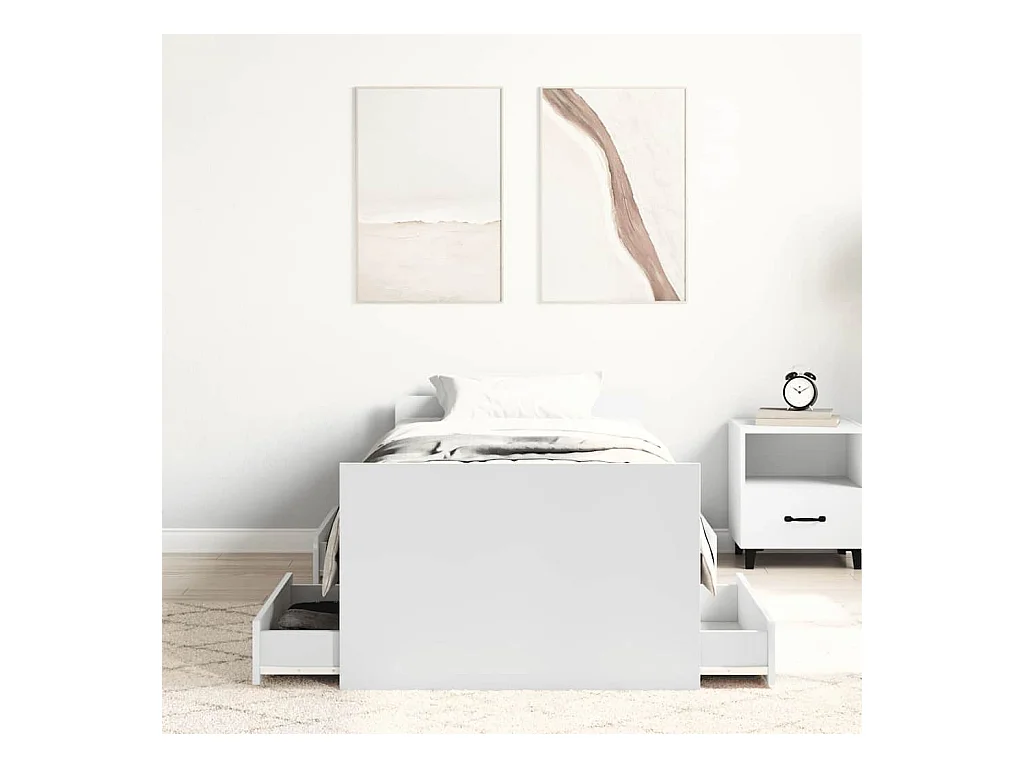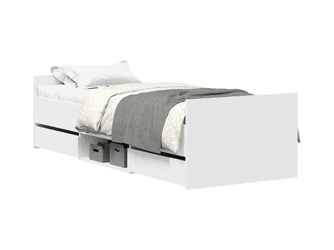 Cadre de lit avec stockage Blanc 90 x 190 cm Bois d'ingénierie