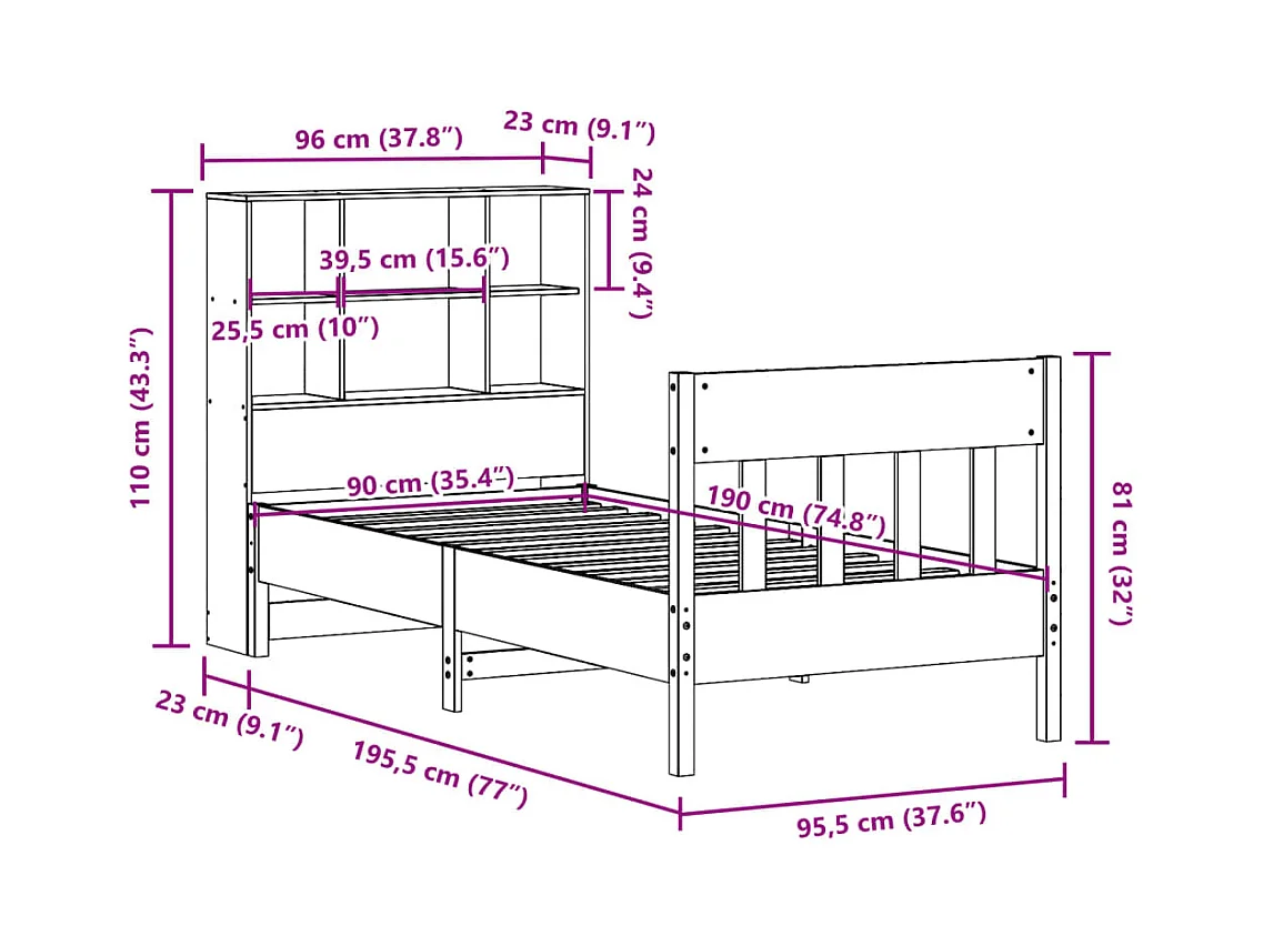 Cadre de lit pour enfants sans matelas 90x190 cm pin massif