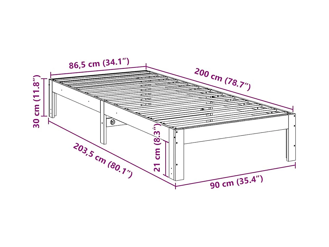 Cadre de lit extra long sans matelas 90x220 cm bois massif
