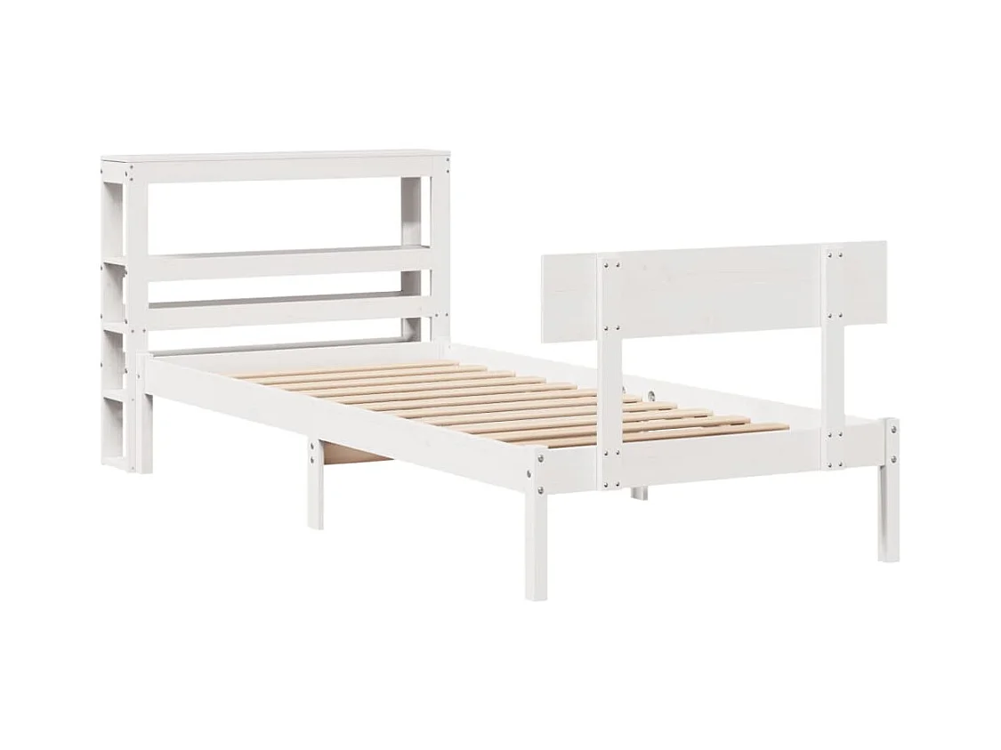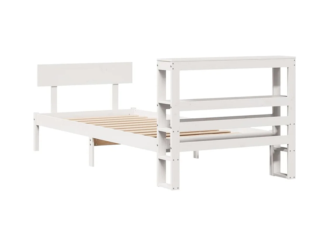 Lit bibliothèque sans matelas blanc 90x200cm bois de pin massif