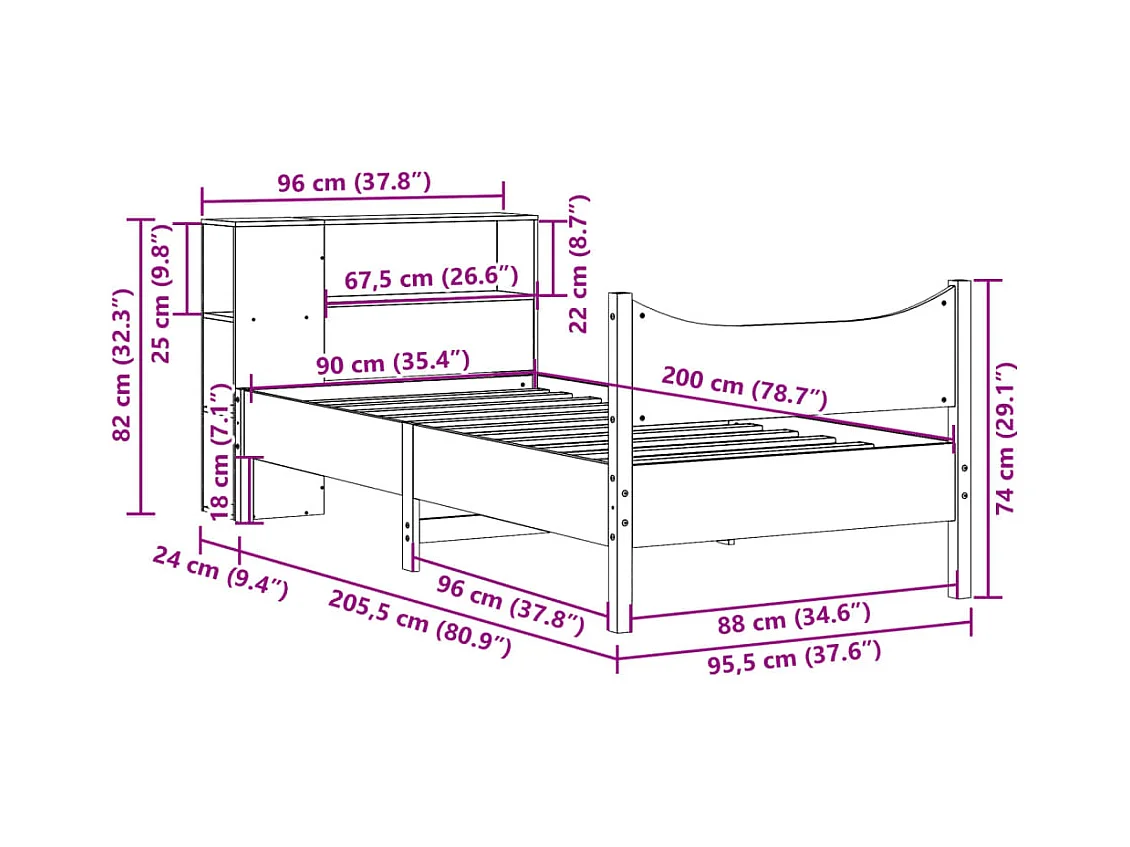 Cadre de lit sans matelas blanc 90x200 cm bois de pin massif