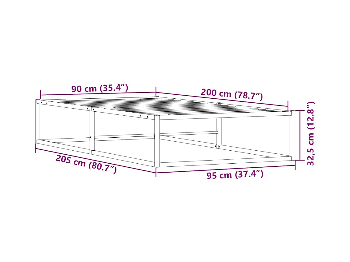 Cadre de lit sans matelas blanc 90x200 cm métal