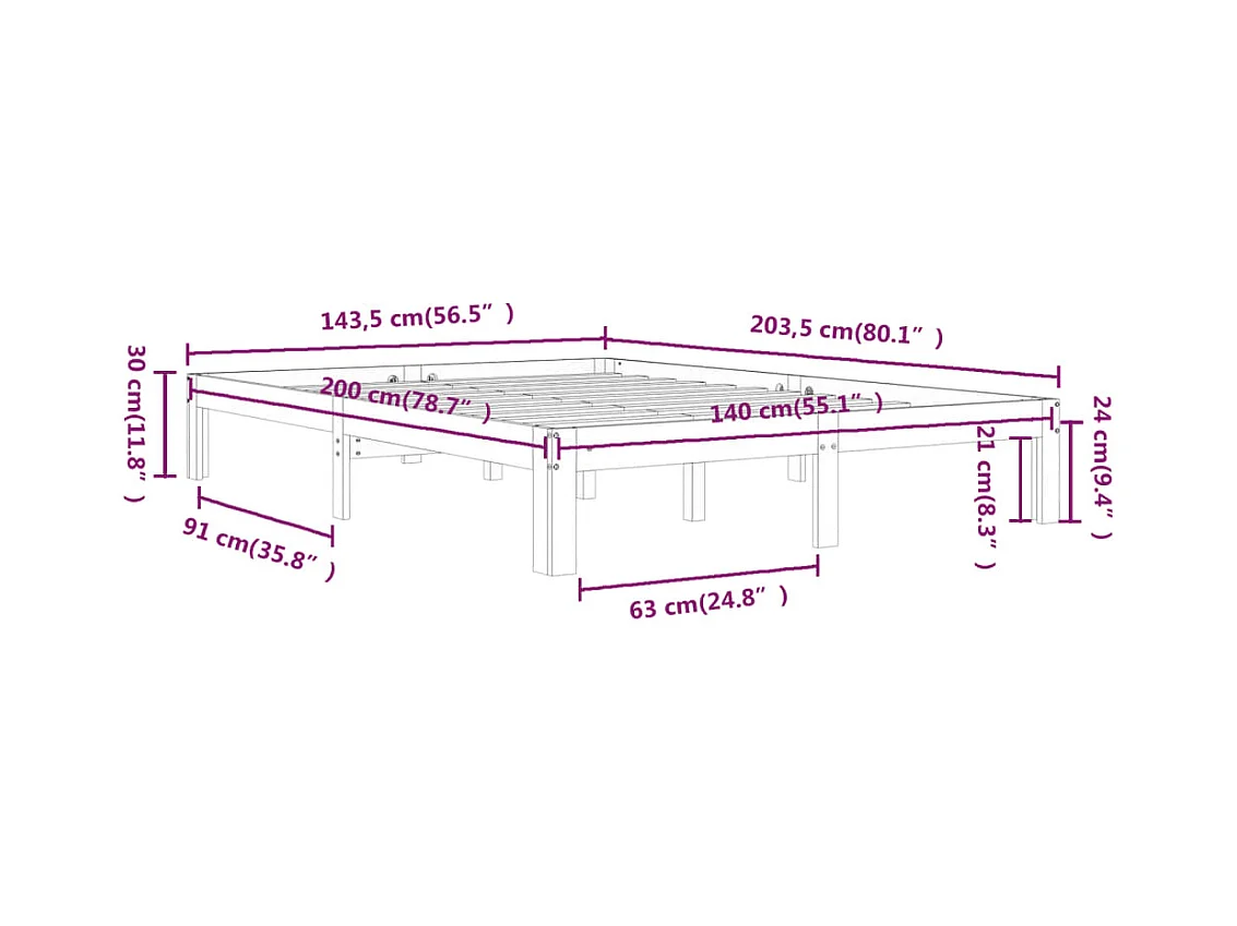 Cadre de lit extra long sans matelas 140x220 cm bois massif pin