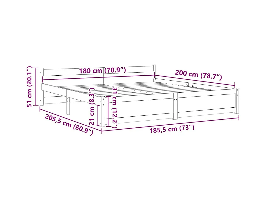 Cadre de lit sans matelas blanc bois massif 180x200 cm