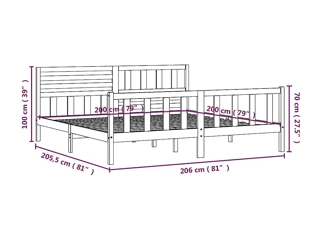 Cadre de lit extra long sans matelas 200x220 cm bois massif