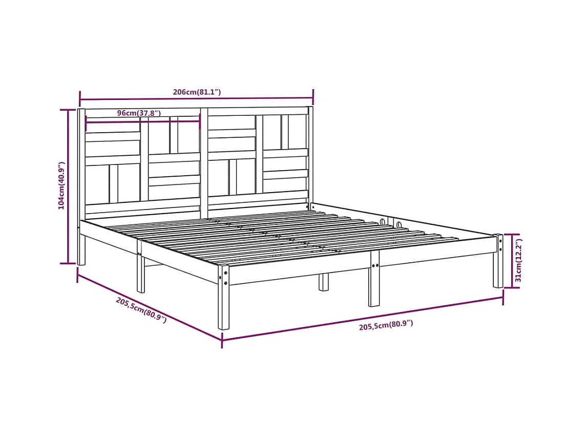 Cadre de lit sans matelas blanc 200x200 cm bois massif