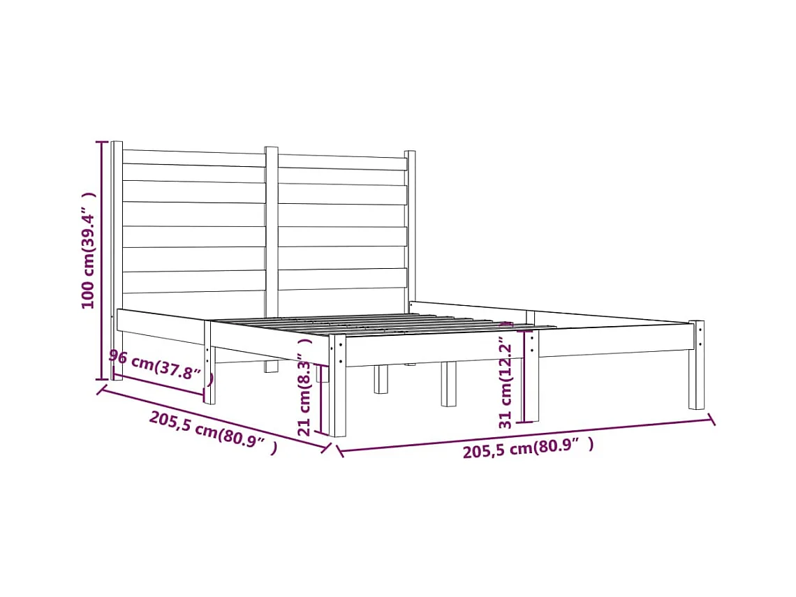 Cadre de lit sans matelas blanc bois massif 200x200 cm