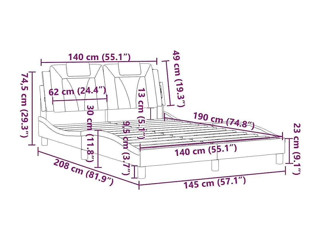 Cadre de lit Viana sans matelas blanc et noir 140x190 cm similicuir