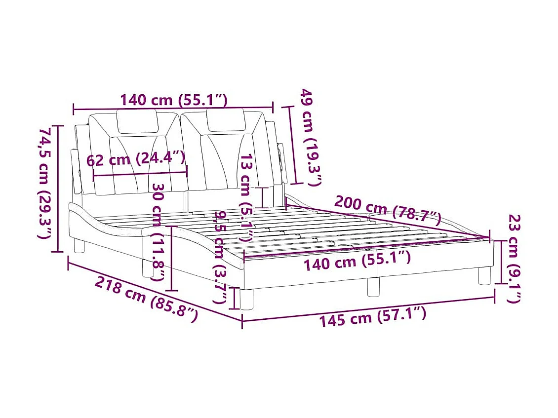 Cadre de lit Viana sans matelas blanc et noir 140x200 cm similicuir