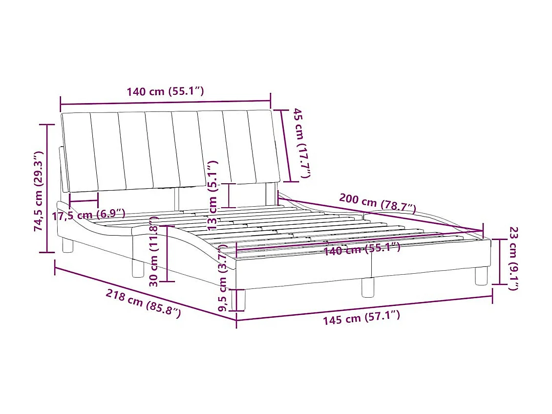 Cadre de lit sans matelas Hanko bleu 140x200 cm velours