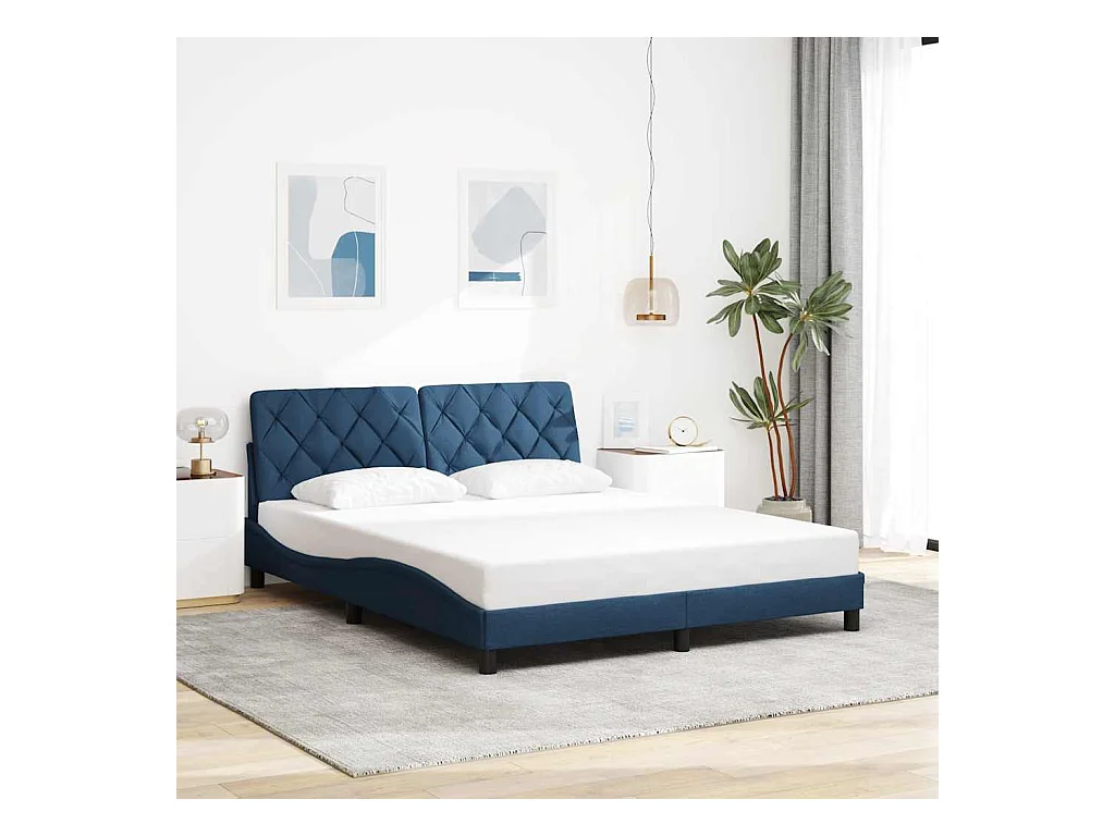 Cadre de lit sans matelas bleu 160x200 cm tissu