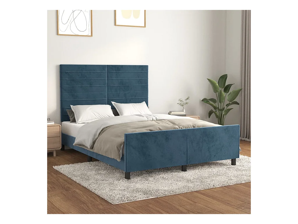 Lit adulte avec tête de lit Bleu foncé 140x200 cm Velours FR904651