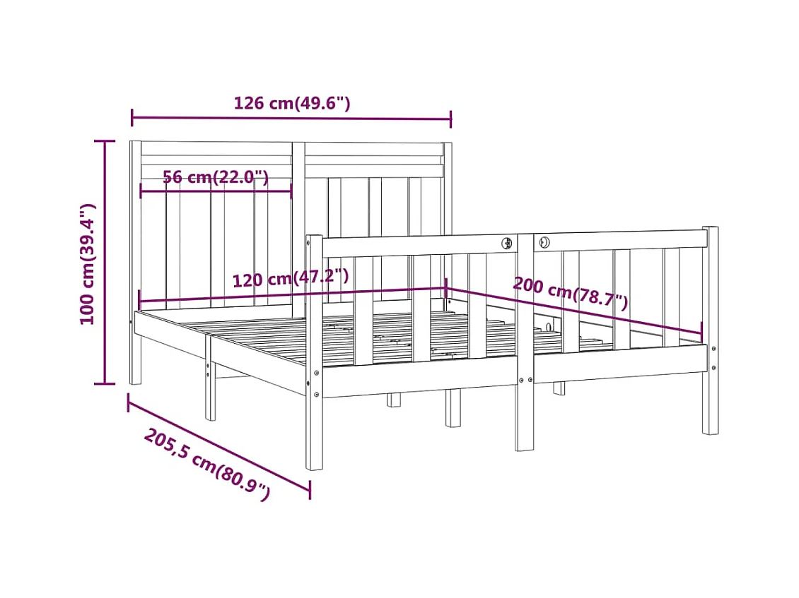 Cadre de lit sans matelas 120x200 cm bois de pin massif