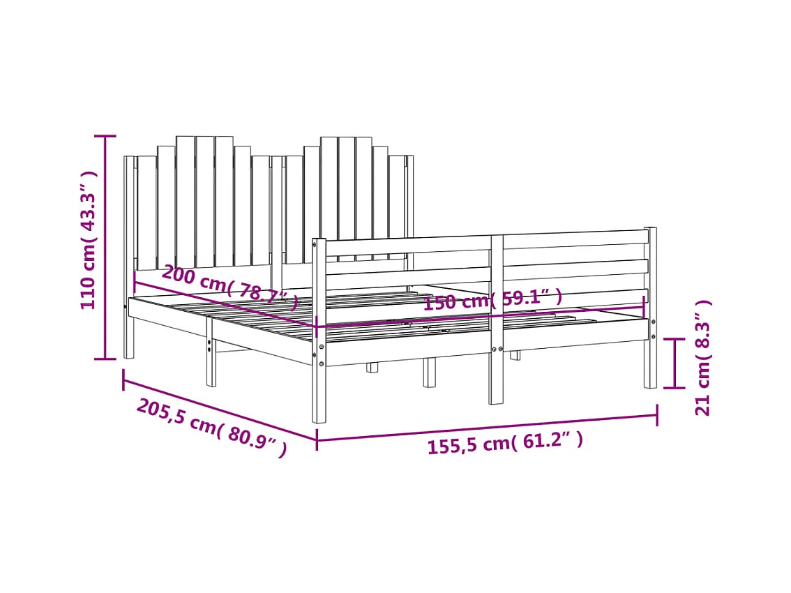 Cadre de lit sans matelas 135x190 cm bois de pin massif