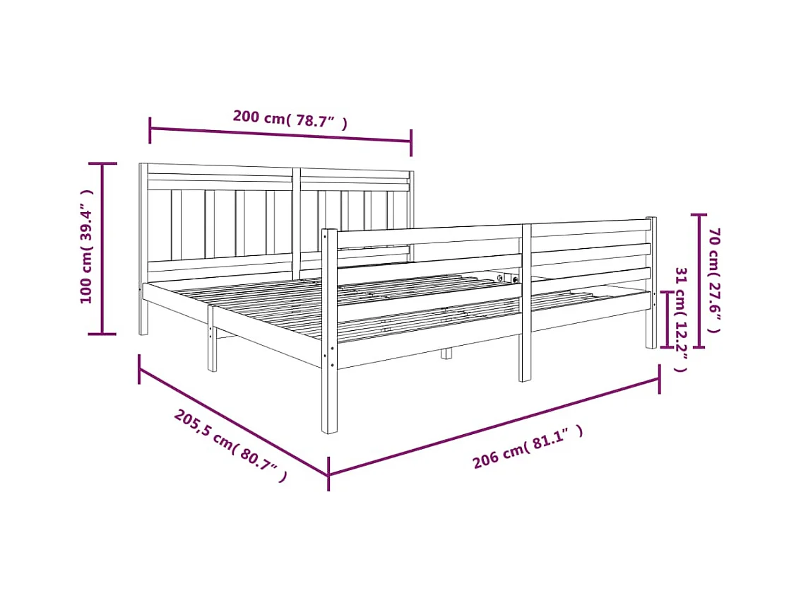 Cadre de lit sans matelas 200x200 cm bois massif