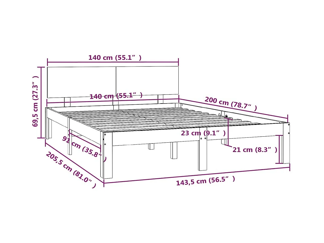 Cadre de lit sans matelas bois massif de pin 140x200 cm