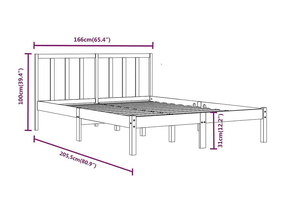 Cadre de lit sans matelas bois massif de pin 160x200 cm