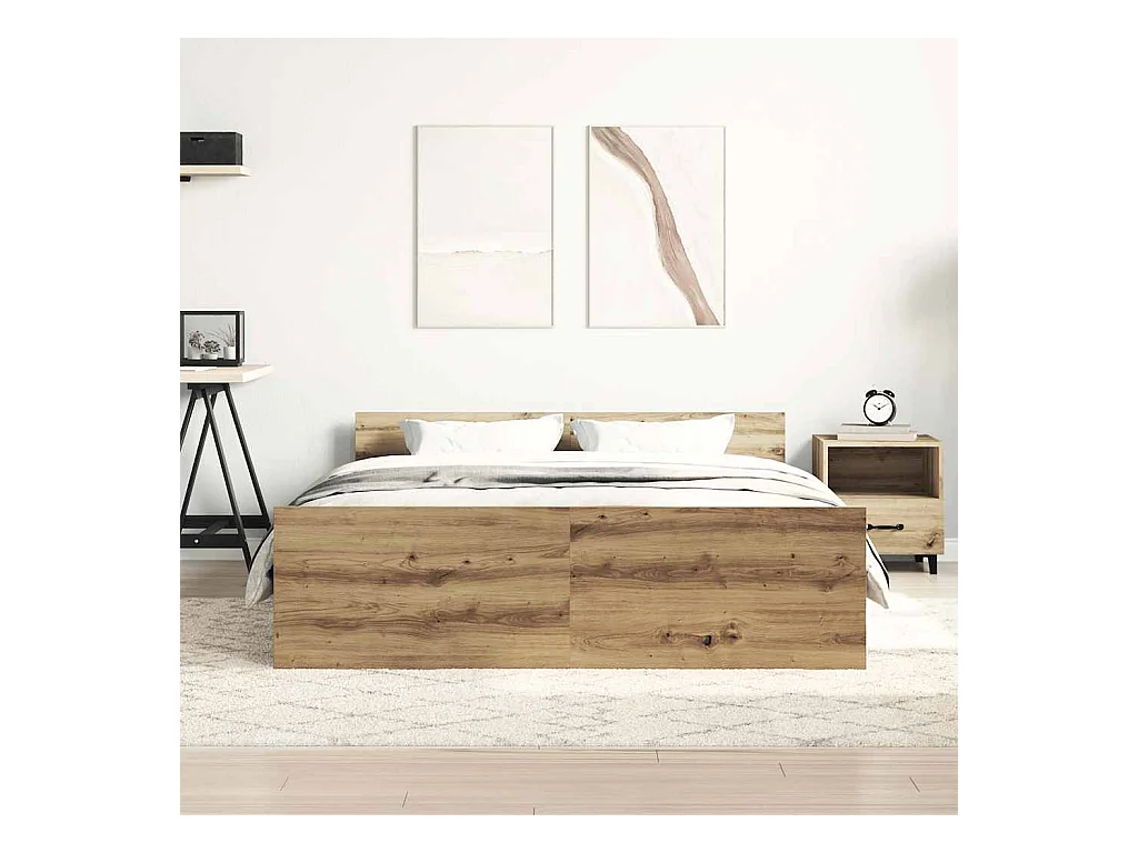 Cadre de lit sans matelas chêne fumé 140x200 cm bois ingénierie