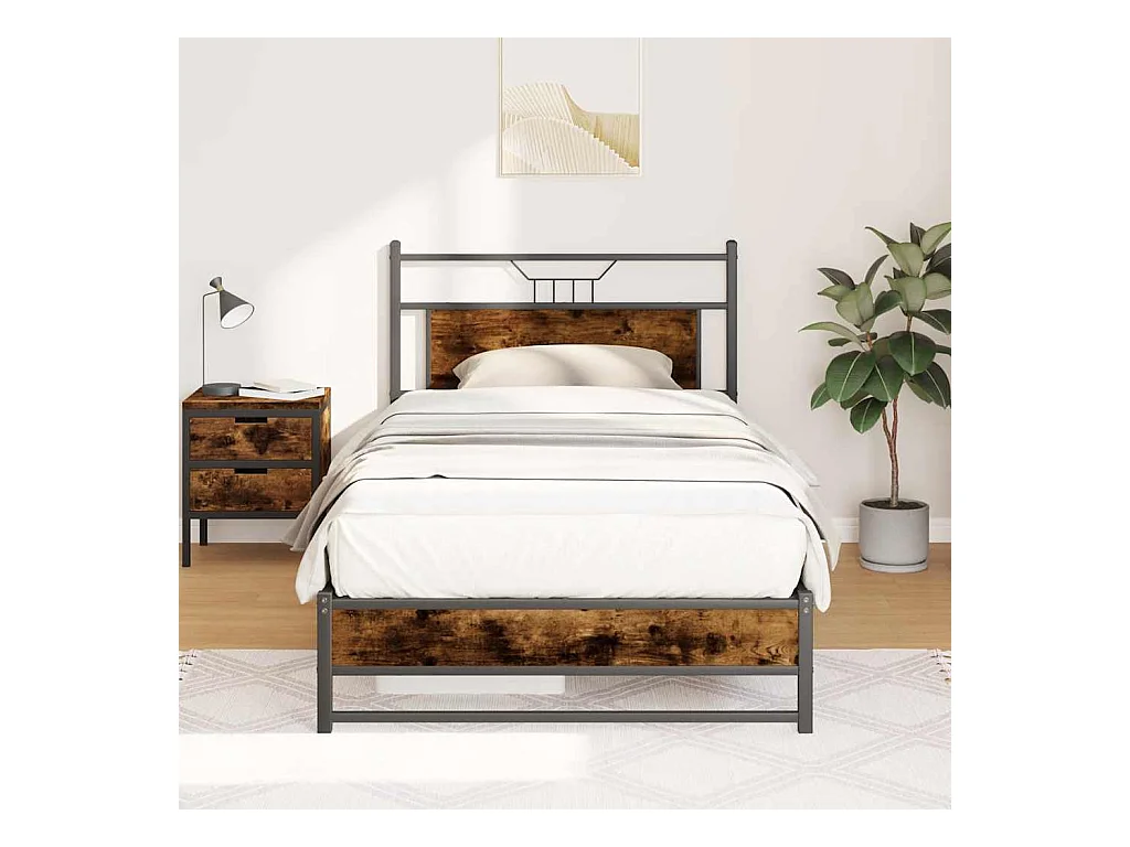 Cadre de lit sans matelas chêne fumé 107x203 cm bois ingénierie