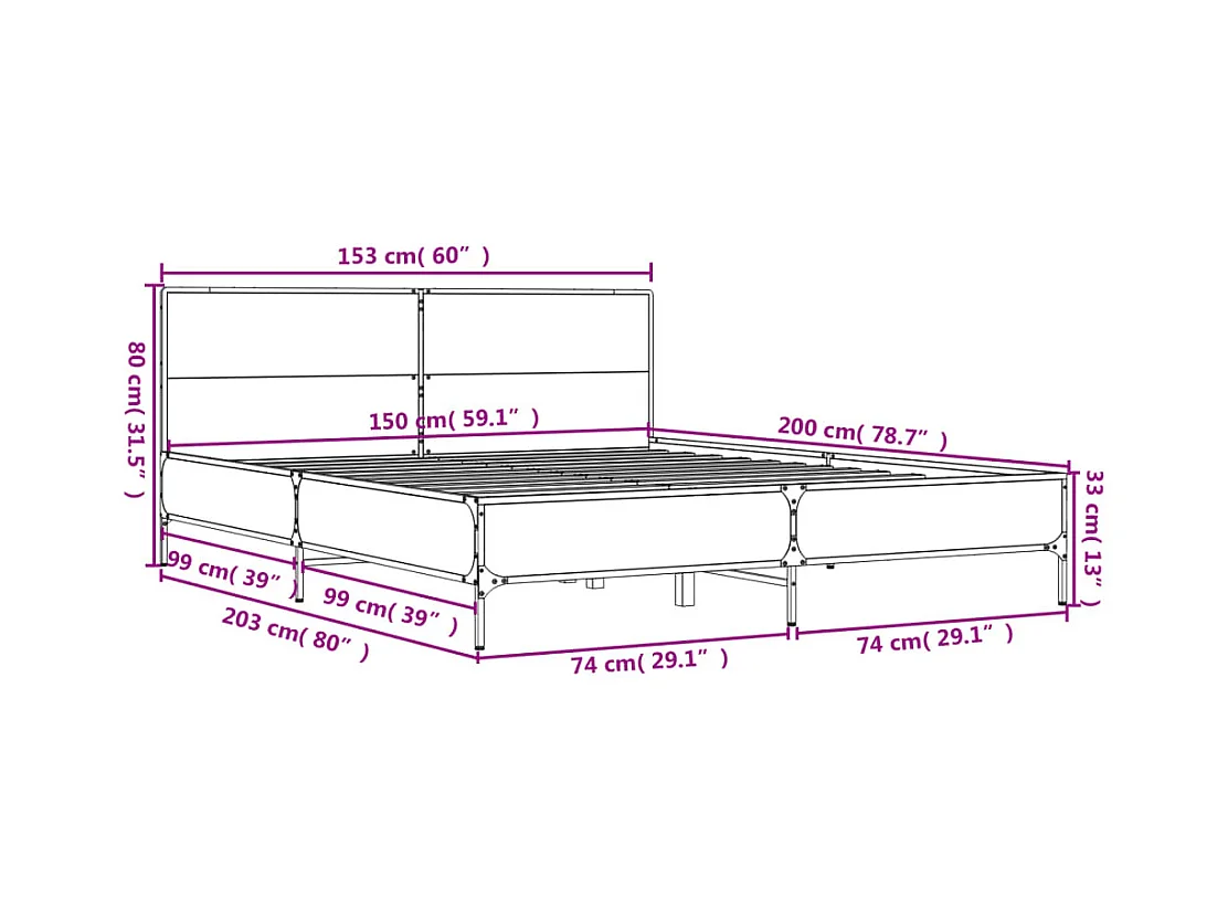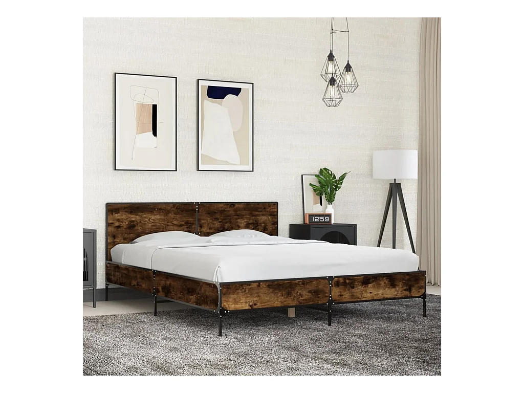 Cadre de lit sans matelas chêne fumé 150x200 cm bois ingénierie