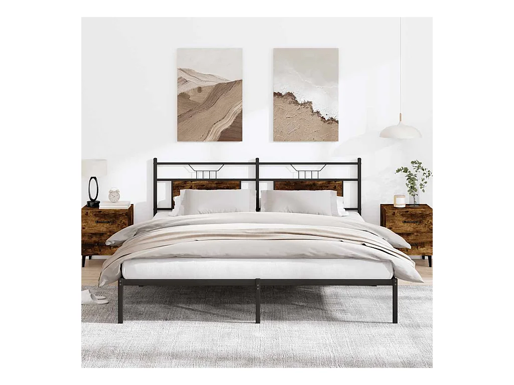 Cadre de lit sans matelas chêne fumé 183x203 cm bois ingénierie