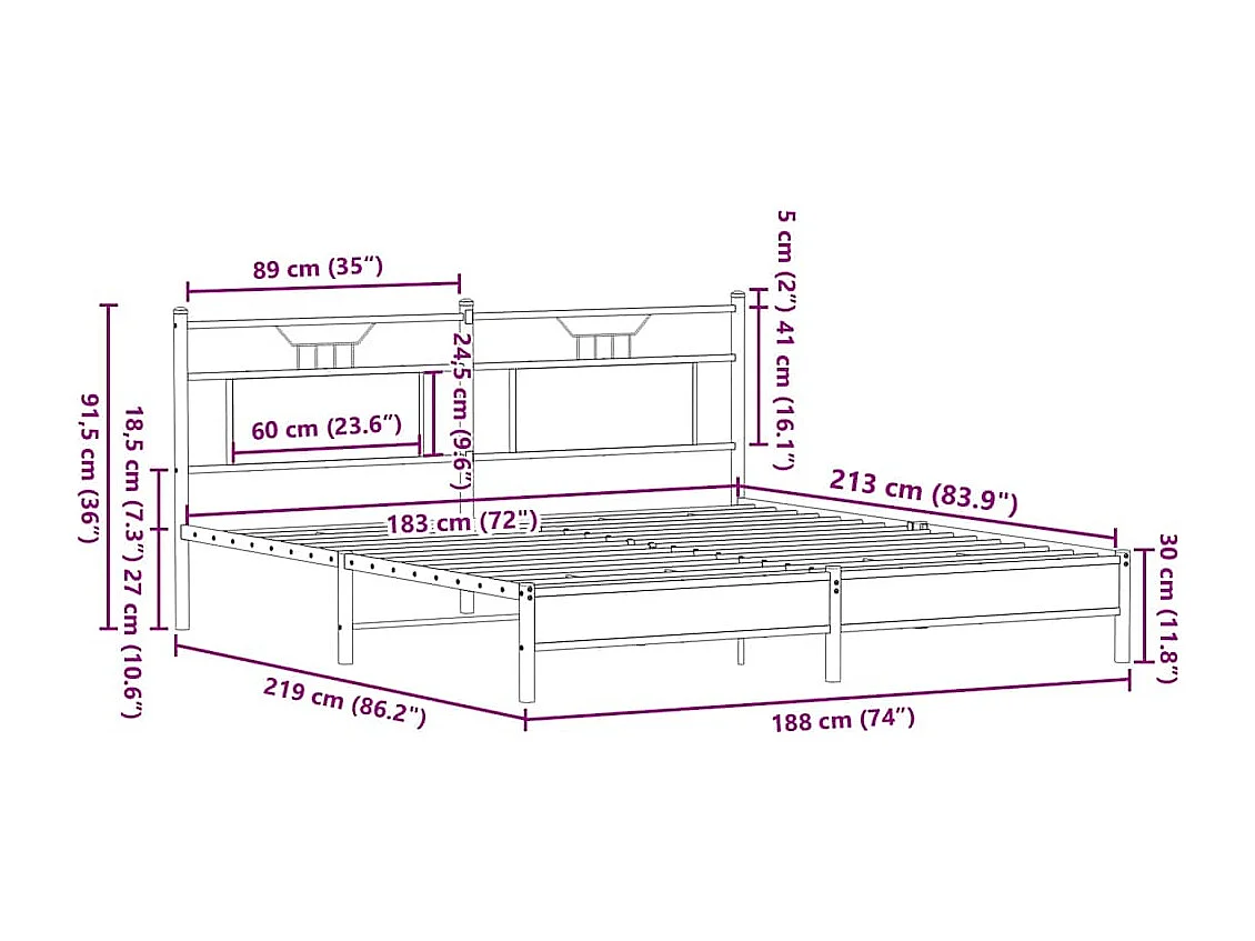 Cadre de lit sans matelas chêne sonoma 183x213 cm