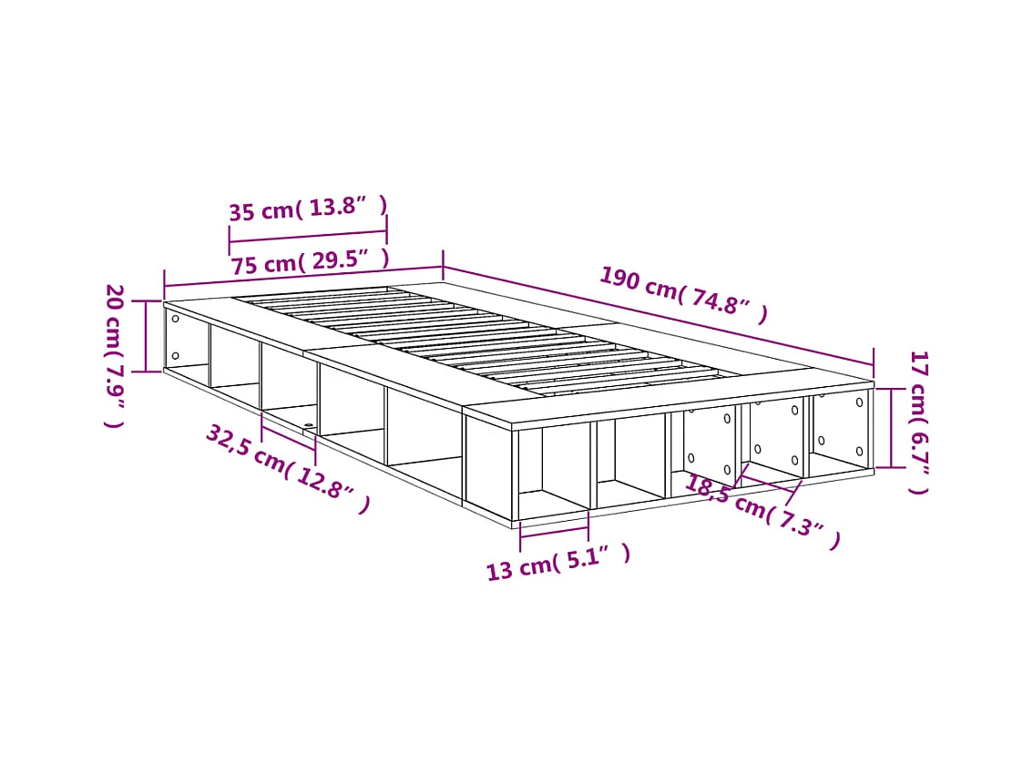 Cadre de lit sans matelas chêne marron 75x190 cm