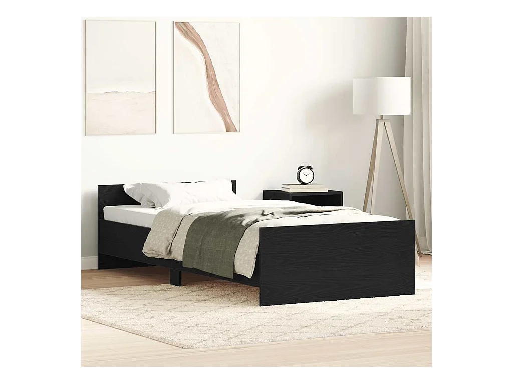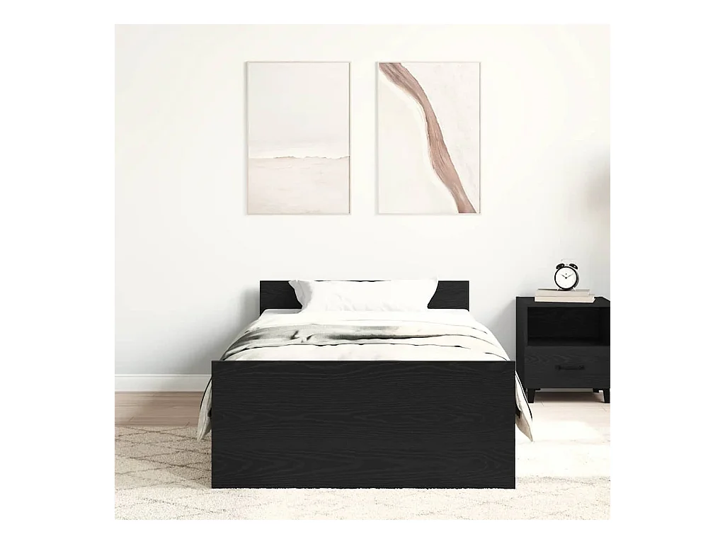 Cadre de lit sans matelas chêne noir 75x190 cm bois ingénierie