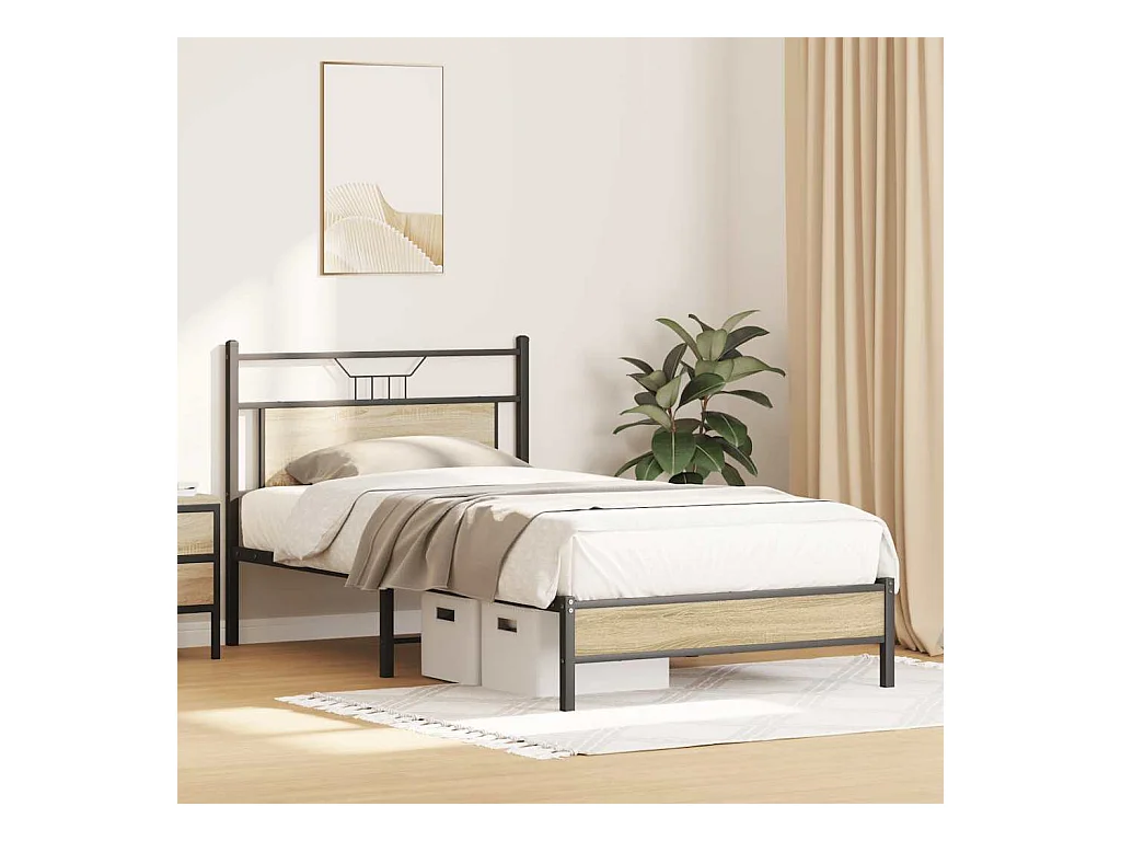 Cadre de lit sans matelas chêne sonoma 107x203 cm