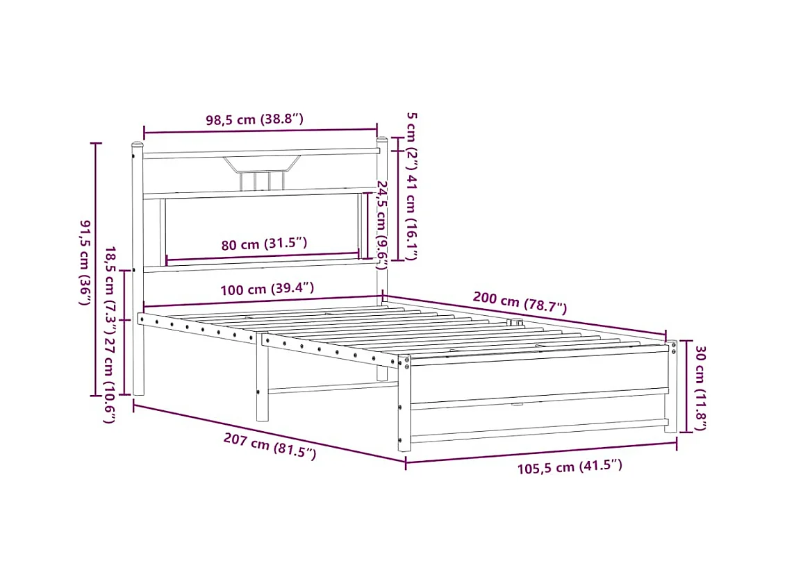 Cadre de lit sans matelas 100x200 cm bois massif de pin