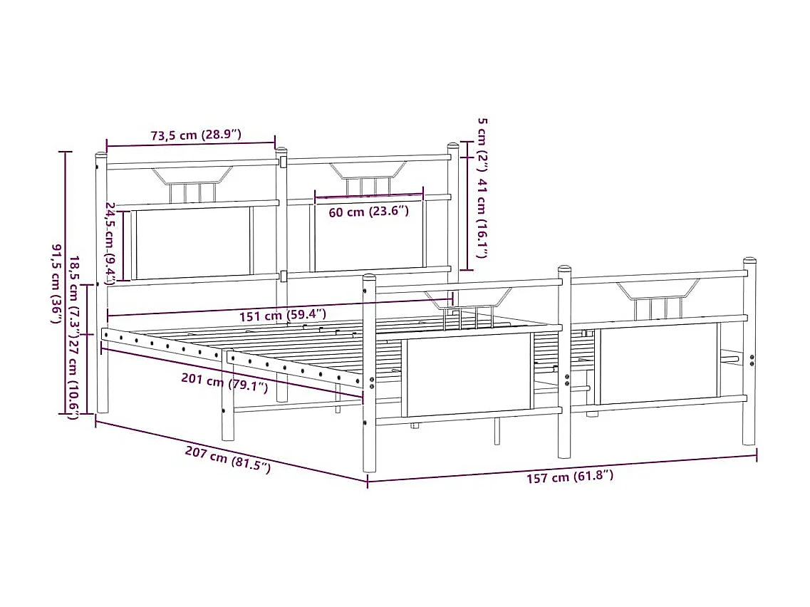 Cadre de lit sans matelas 150x200 cm bois de pin massif