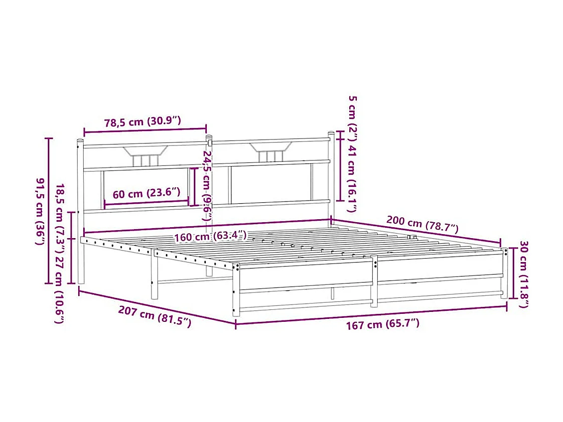 Cadre de lit sans matelas chêne sonoma 160x200 cm