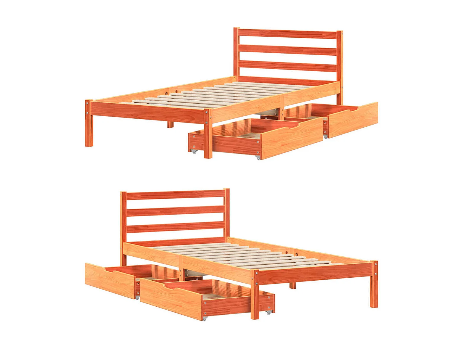 Cadre de lit sans matelas cire marron 100x200cm bois pin massif